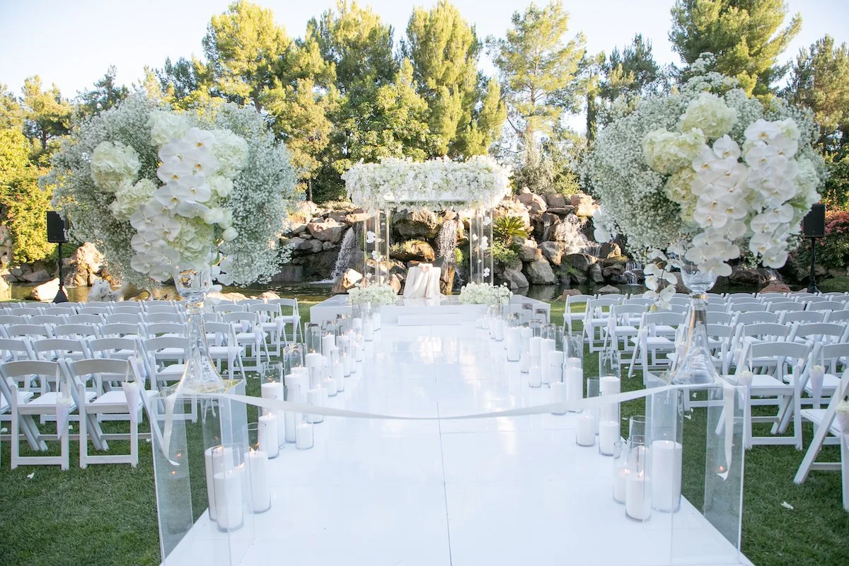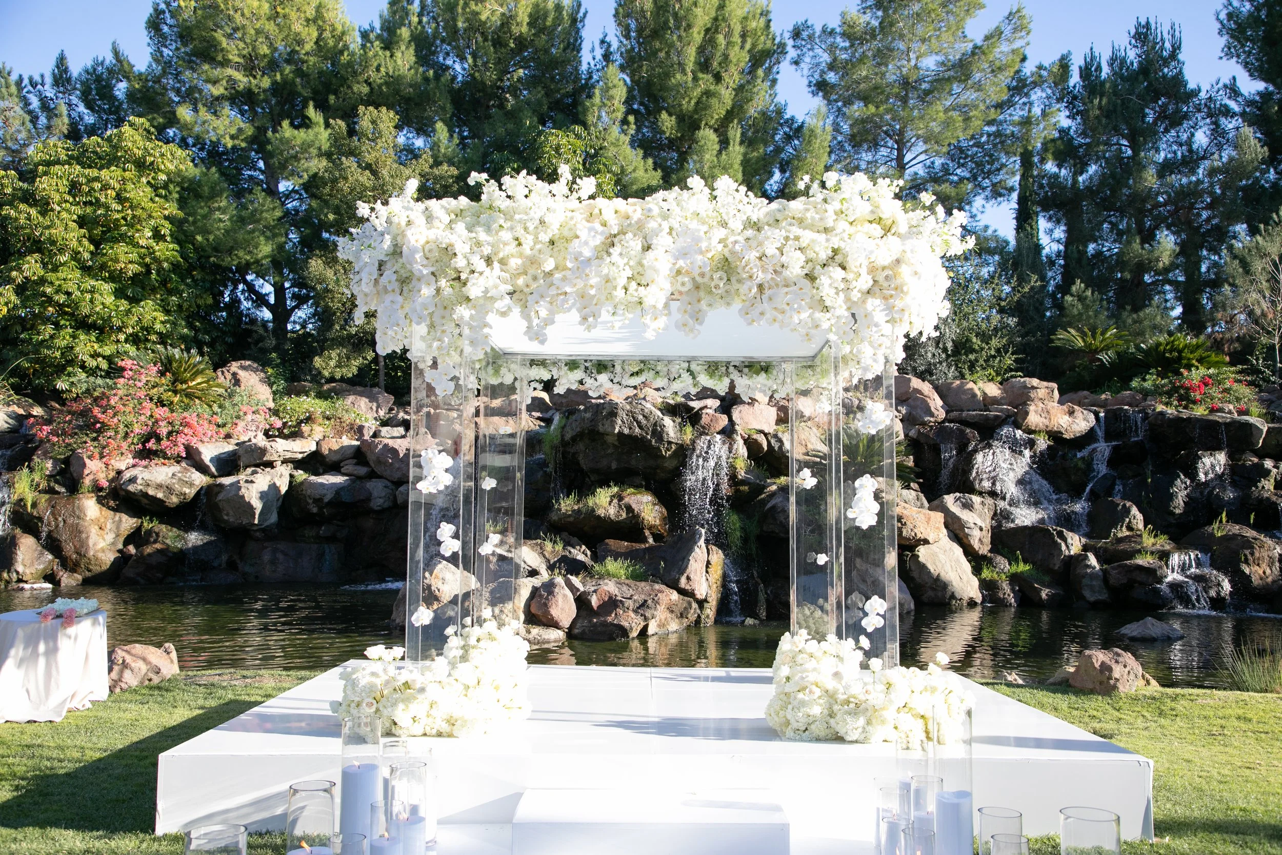 Karishma and Sohail wanted a nondenominational ceremony and Nikki was able to recommend the services of Rabbi Stevens. Our couple met with him and felt very comfortable him performing the ceremony. As for the ceremony structure, Karu’s vision was to have an ethereal, organic and understated look with only white flowers. Because of Sohail’s severe allergies to fragrant flowers, non fragrant flowers were carefully chosen which included baby’s breath, non fragrant roses, hydrangeas and orchids.